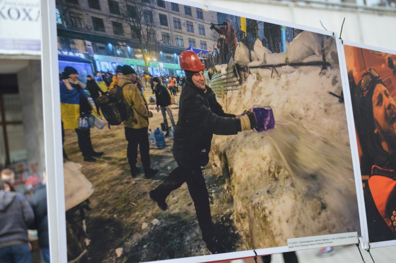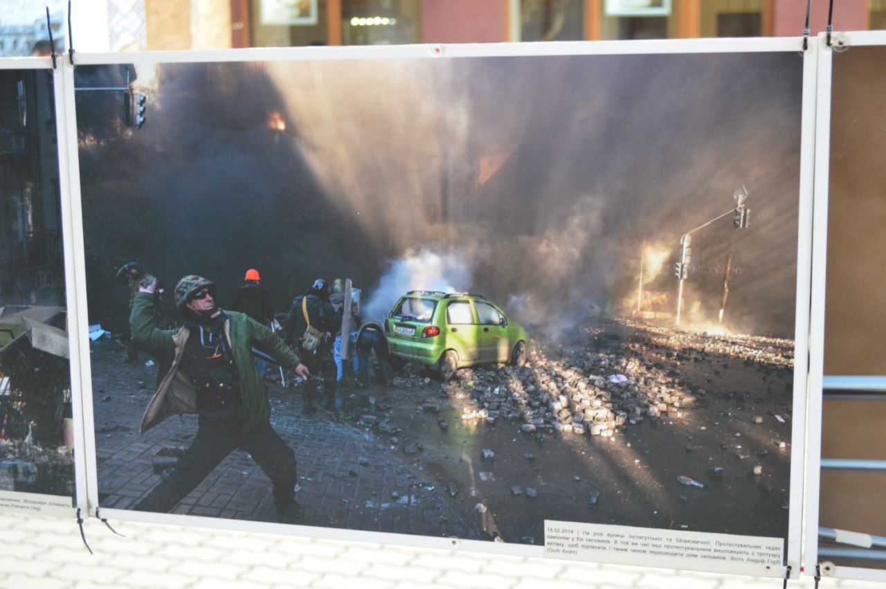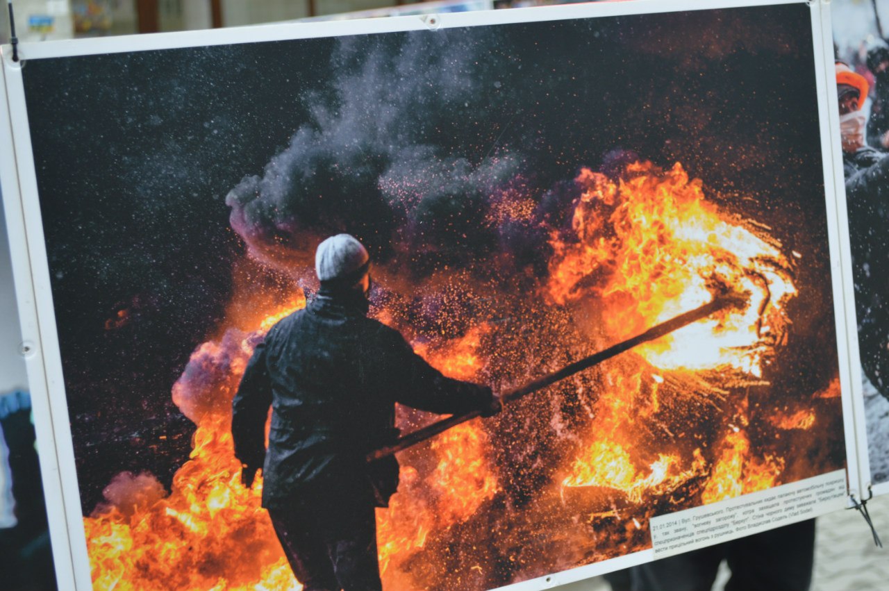 Присвячена виставка річниці Революції Гідності. На ній представлено роботи фотографів, які вони відзняли минулого року під час Майдану, пише Фіртка.
