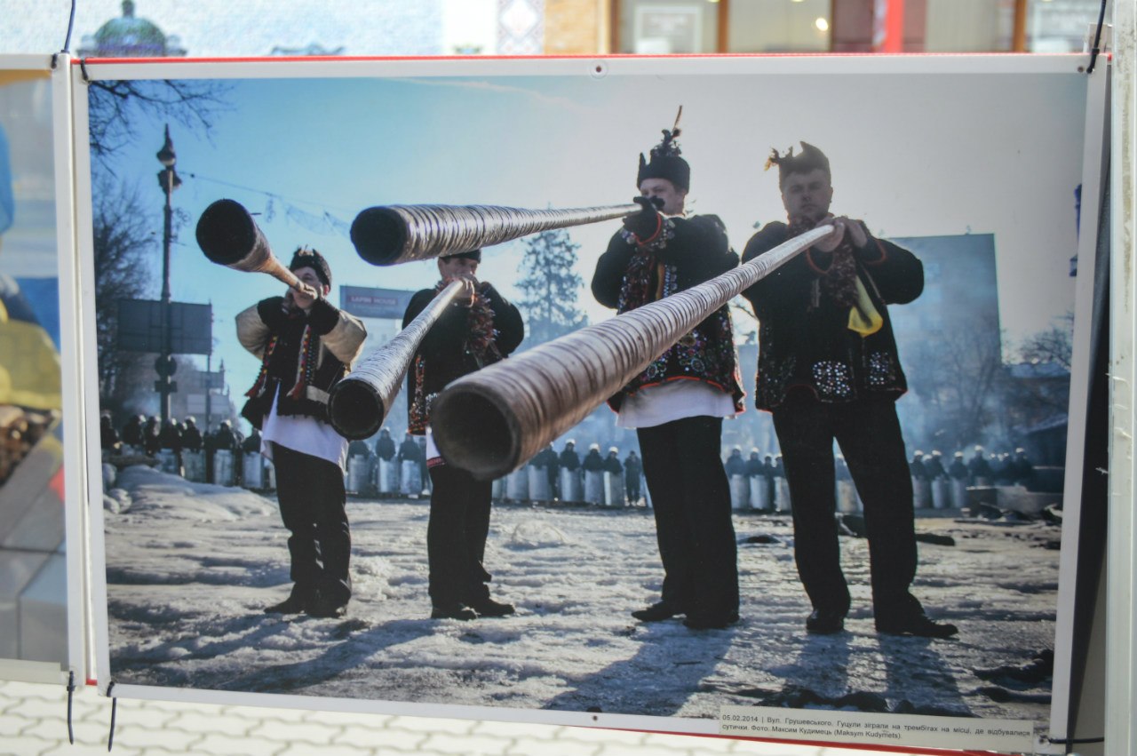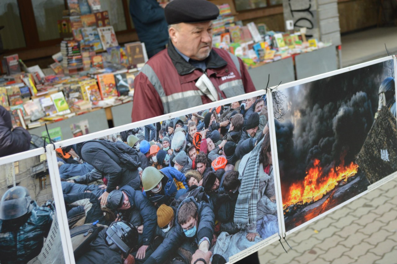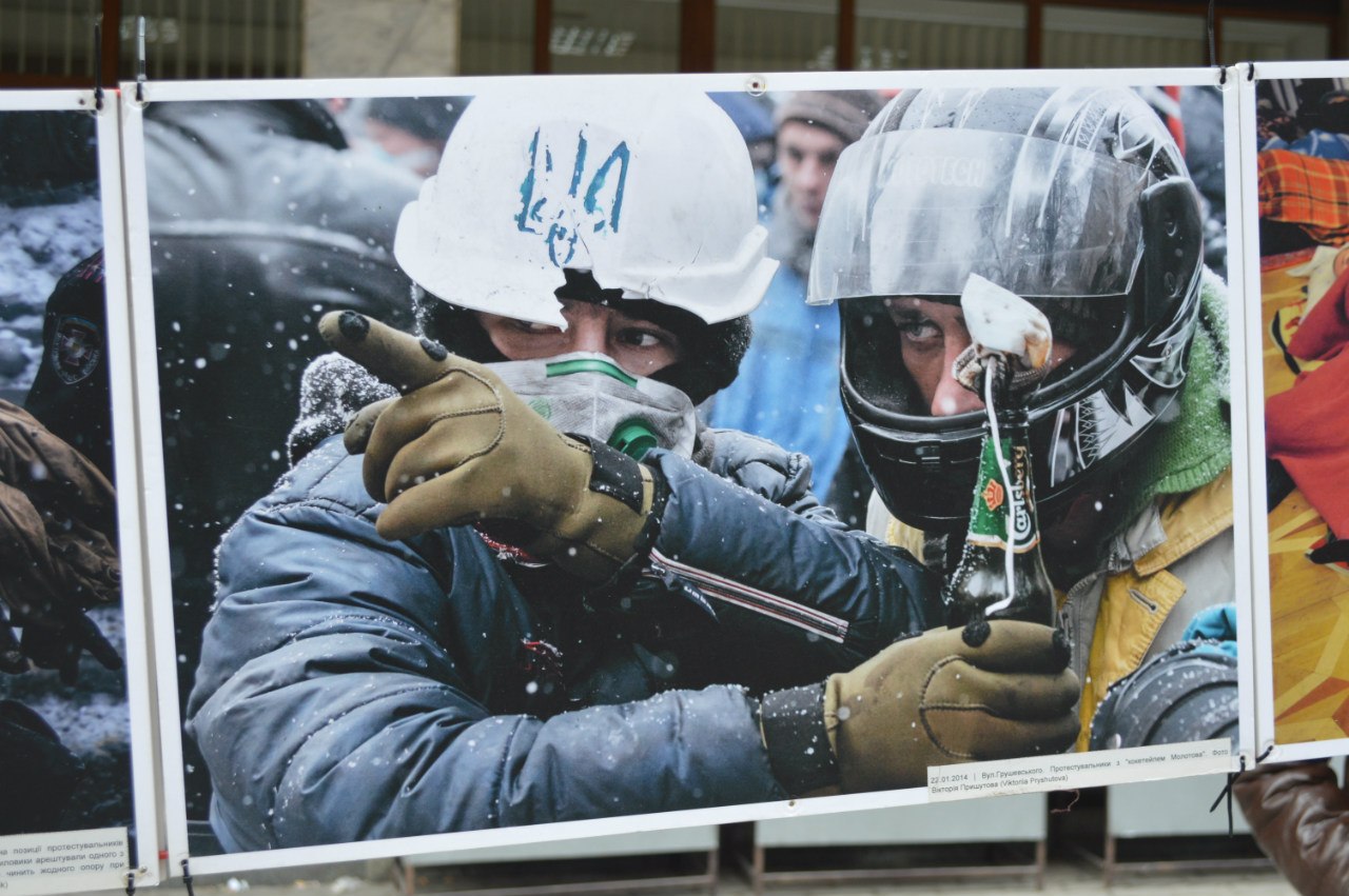 Присвячена виставка річниці Революції Гідності. На ній представлено роботи фотографів, які вони відзняли минулого року під час Майдану, пише Фіртка.