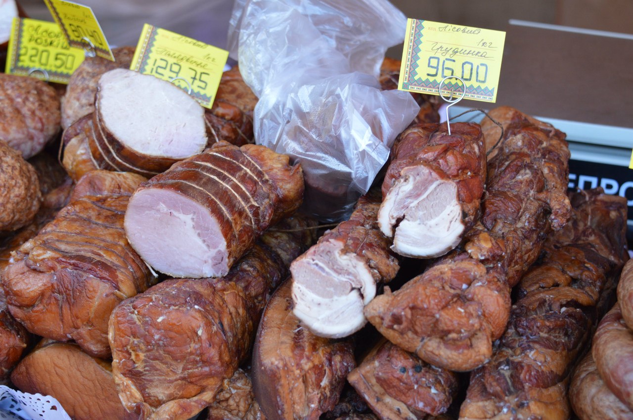 Ковбаси - від 50 грн.. М'ясо від 80-90 грн.