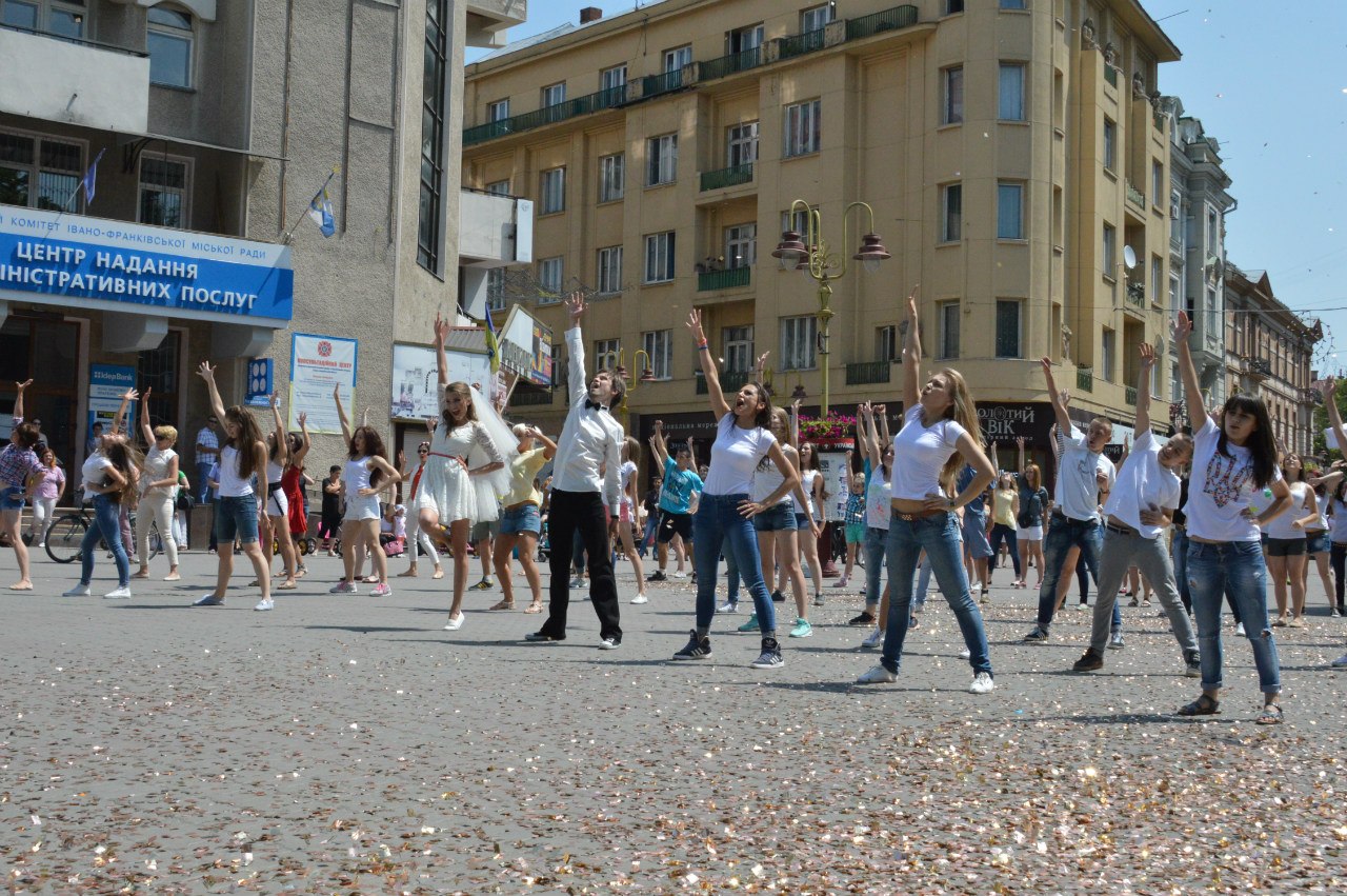 Грандіозним танцювалльним флешмобом в Івано-Франківську стартував "Pasage Wedding Festival". Близько сотні дівчат разом із молодятами станцювали на Вічевому майдані.