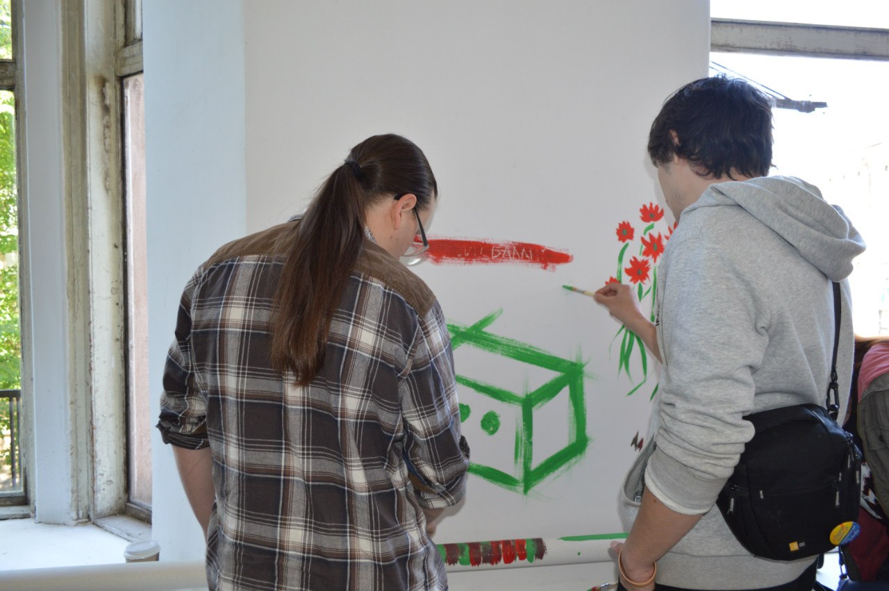 На білих стінах мистецького простору себе може спробувати будь-хто. Немає ніяких табу, ніяких правил, можна перемальовувати, домальовувати чужі малюнки, не треба знати мови, не треба вміти малювати, потрібне тільки бажання.