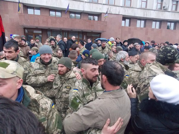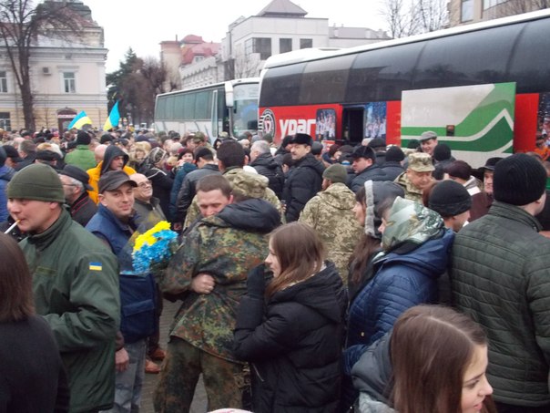 В Івано-Франківську зустріли бійців 128 гірсько-піхотної бригади, які вийшли з-під Дебальцевого (фото)