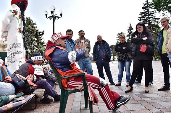 Біля будівлі Верховної Ради активісти оголосили голодування на підтримку закону про реструктуризацію зобов'язань за кредитами в іноземній валюті.
