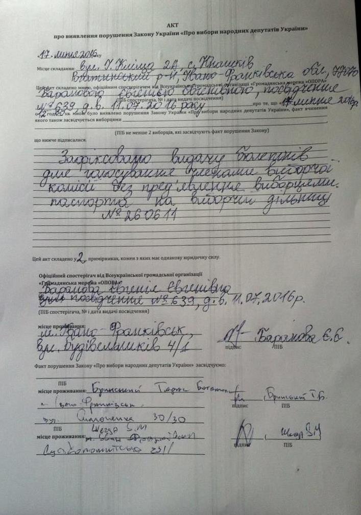 Спостерігач ОПОРИ повідомляє, що на виборчій дільниці №260611, що у селі Юнашкові, Рогатинського району, виборцям видали бюлетені, хоча вони не пред’явили паспорти.