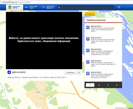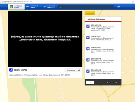 На порталі vybory2012.gov.uа, де можна в онлайн режимі слідкувати за виборами, відео не доступне.