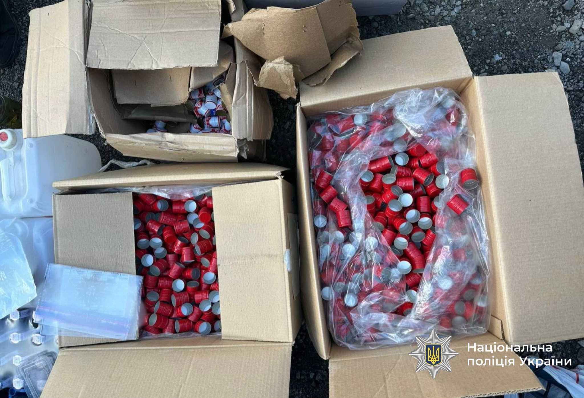 Серед вилученого є підроблені марки акцизного податку, тара для виготовлення підакцизних товарів, концентрати для розведення алкоголю та фасувальні матеріали.