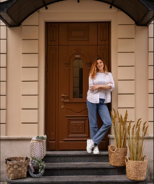 Дизайн дверей легко адаптується до архітектури будинку. Для багатоповерхівок частіше обирають стримані варіанти без зайвого декору. Для приватних будівель — моделі з акцентом на фактуру, колір або скляні вставки. Так двері стають логічним продовженням фасаду, а не випадковою деталлю.