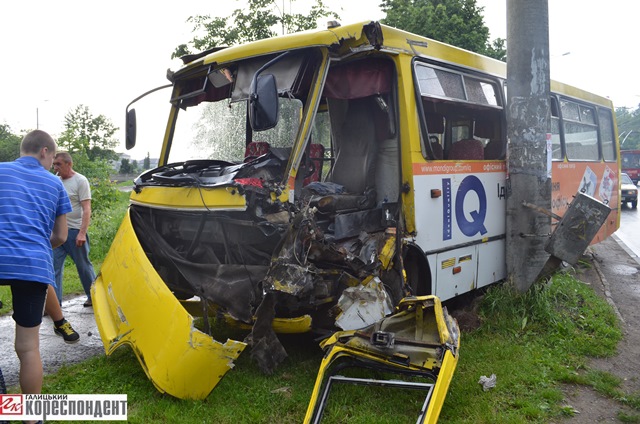 Водій вантажного автомобіля DAF, рухаючись у напрямку з м. Калуш до обласного центру (згору вниз) не впорався з керуванням, а саме не зумів зупинити ваговик та виїхав на перехрестя, яким в цей час на зелений сигнал світлофора рухався міський маршрутний автобус «Богдан», виїжджаючи із пасажирами з автостанції №2 в напрямку до радіозавода, інформують в УДАІ УМВС в області.