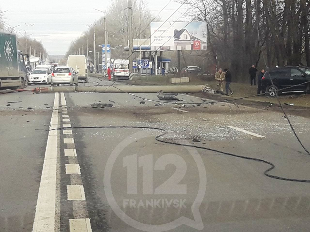 Неподалік Івано-Франківська трапилась ДТП. Внаслідок зіткнення двох автомобілів в Ямниці один з них зніс електроопору.