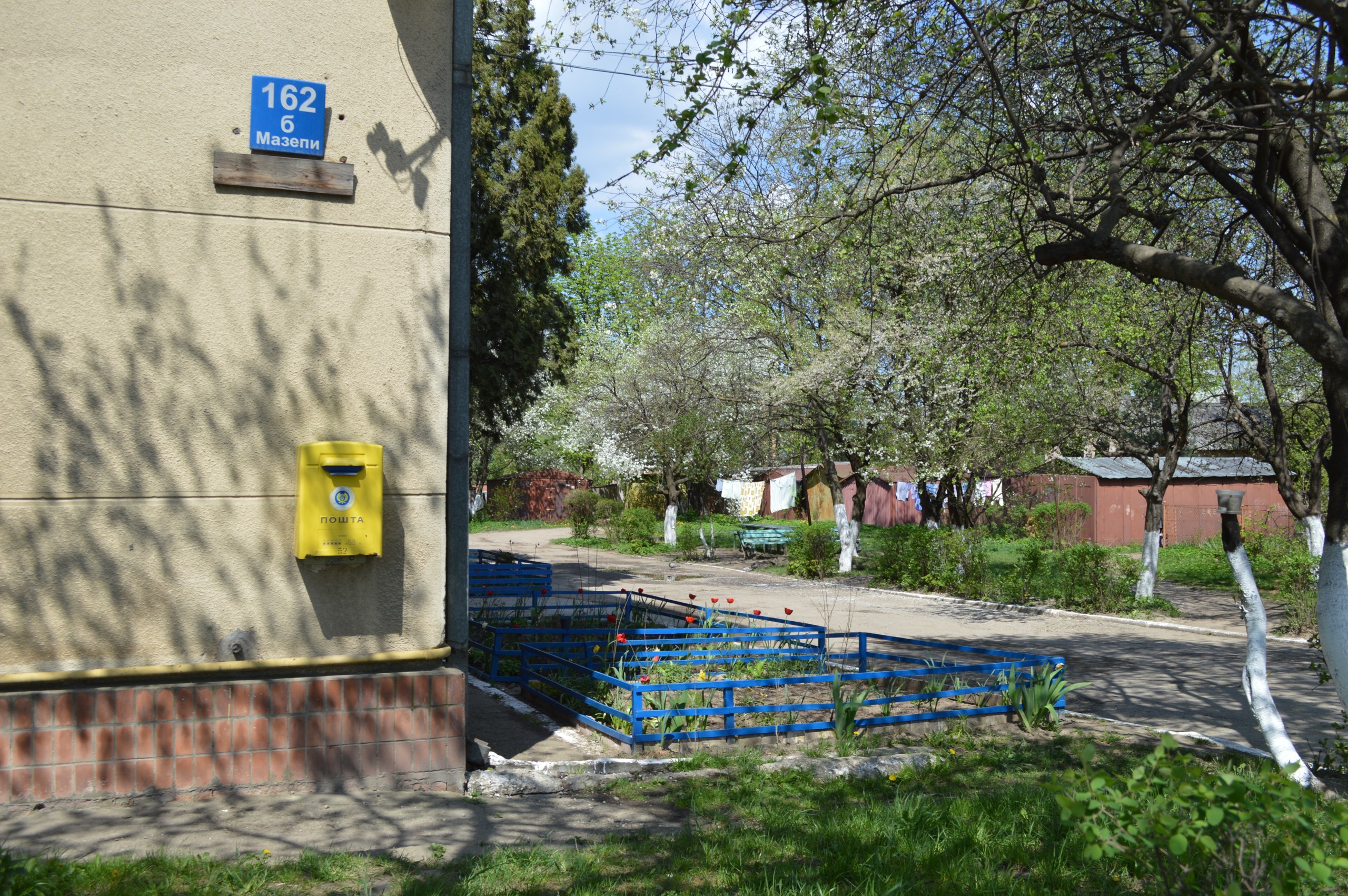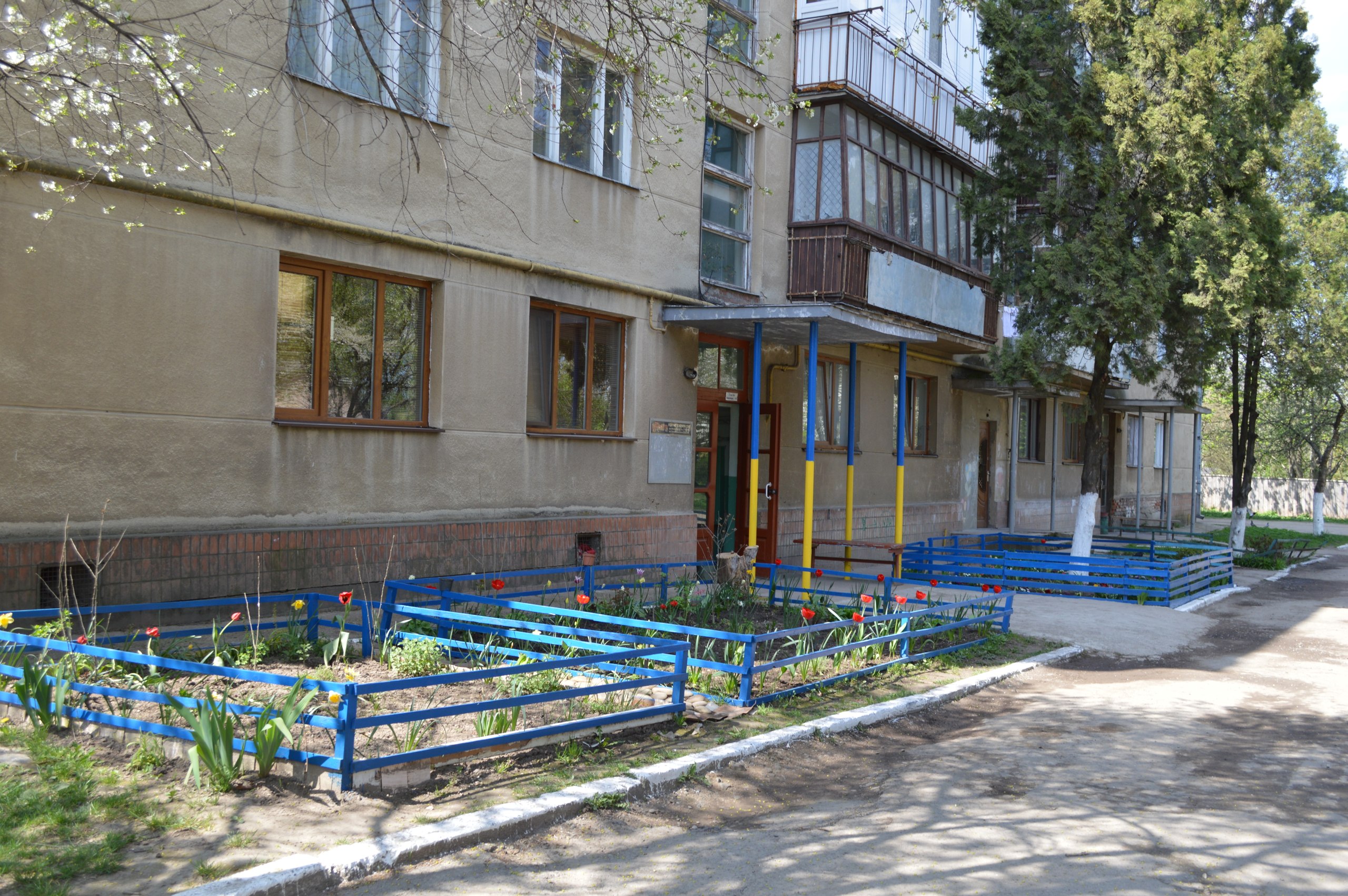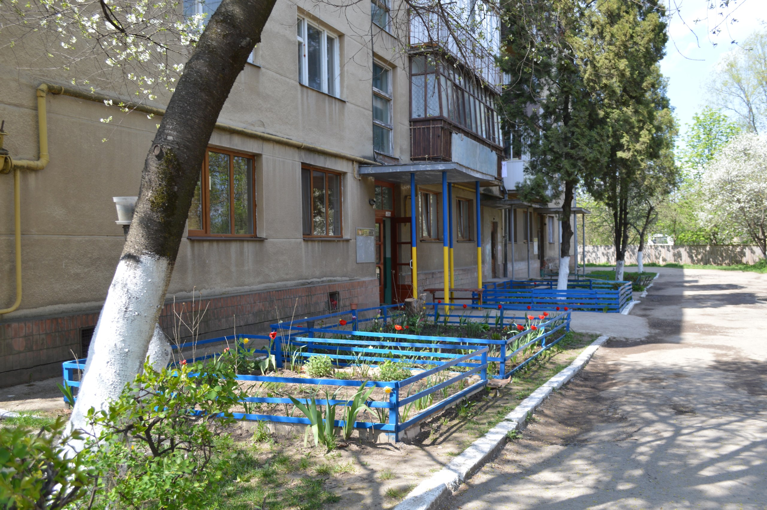 В Івано-Франківську мешканці будинку 162,б по вулиці Мазепи пофарбували свій під’їзд і парканець навколо доглянутої клумби в жовто-сині барви.