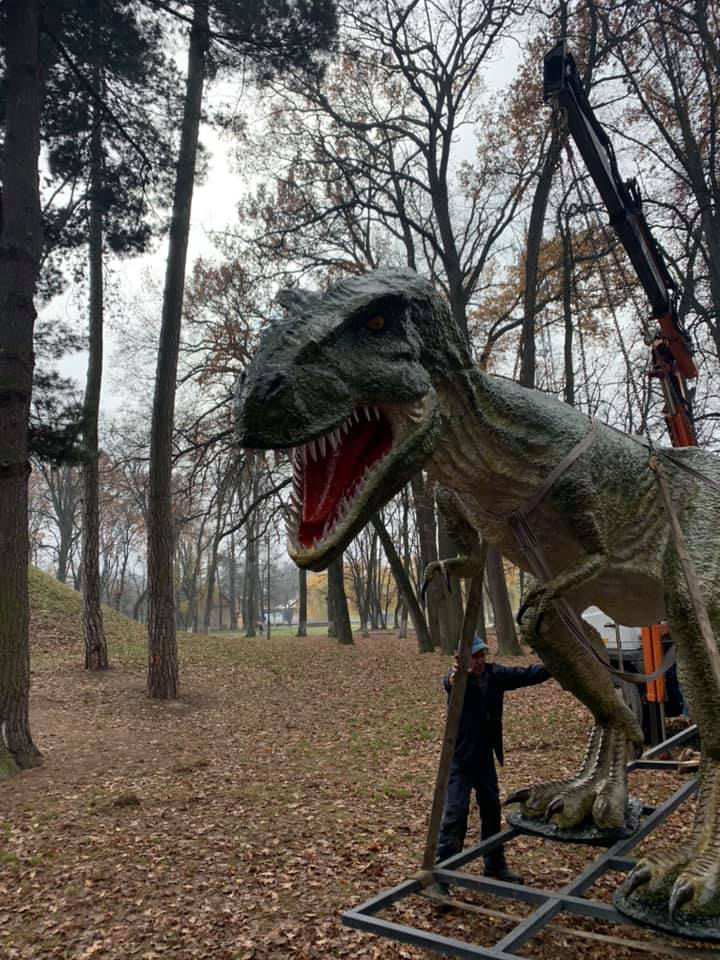 У міський парк Івано-Франківська привезли скульптуру динозавра.