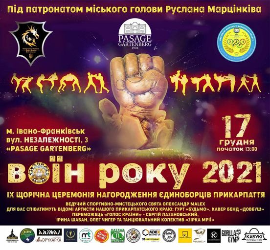У п'ятницю, 17 грудня, в Івано-Франківську проведуть 9-ту церемонію нагородження найкращих єдиноборців Прикарпаття "Воїн року-2021".